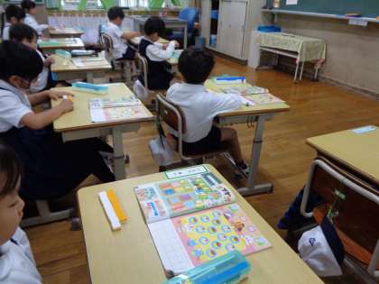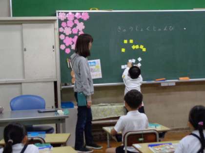 教科書のいろいろな絵をブロックに置き換えて考えます。