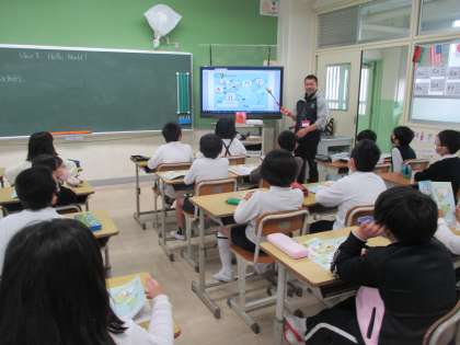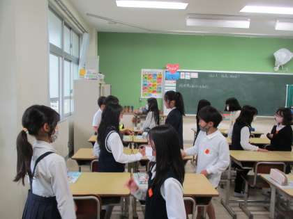 今年からは,外国語教室ができ掲示には、いろんな国の国旗や英語の掲示物に囲まれて楽しく取り組んでいました。