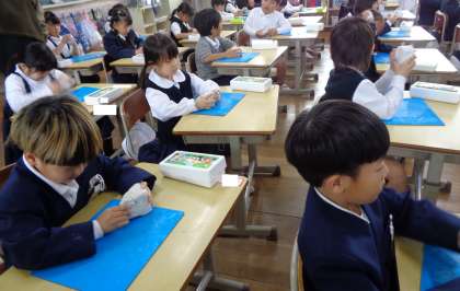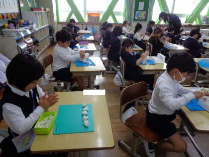 学級のようす 1年生 公開日 2023/04/25 更新日 2023/04/25 1年生 「り」の練習です。 長さが異なること、1画目と1画目とのあいだなど、形を整えて書くことを意識させて、「い」ではなく「り」を練習していきます。 他の2クラスは粘土をしていました。 大きな球体にしたり、小さな球体を作ったり、立方体にしたり・・・。 手のひらや指をしっかりと使っていきます。