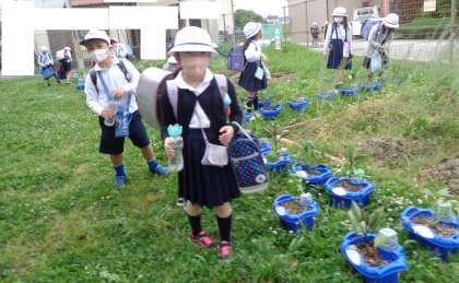 登校のようす 5月8日(月) 公開日 2023/05/08 更新日 2023/05/08 子どもの活動 2年生の子どもたちが、さっそく野菜たちに水やりに来ました。 昨日からの大雨のおかげで、土はまだ湿っていることに気づくと、「水、ちょっとにしておこう。」と、土の様子をしっかりと観察している声も聞こえてきました。 アジサイもきれいです。