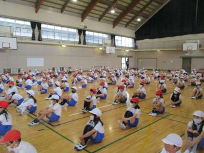 今日から,体育大会の練習が3年生と合同で始まりました。話を聞く姿は素晴らしかったです。ダンスの振り付けも楽しく取り組んでいました。明日からも練習は,続きます。体調に気を付けながら取り組んでいってほしいです。
