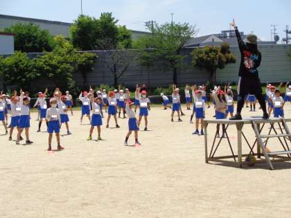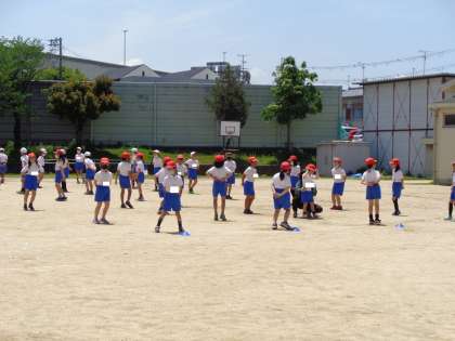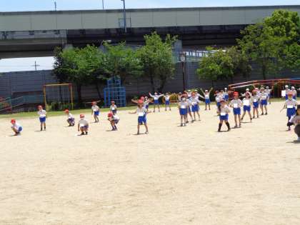 とってもにこにこ顔で、体をのびのびと動かしています。