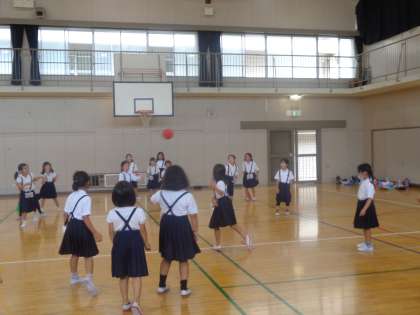 2年生は、学年みんなで、ドッジボール。