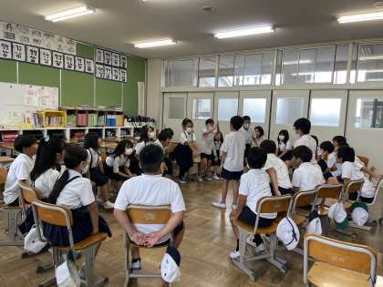 雨でも楽しめる方法はないかと考え、教室でみんな遊びをしていました。