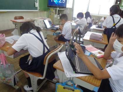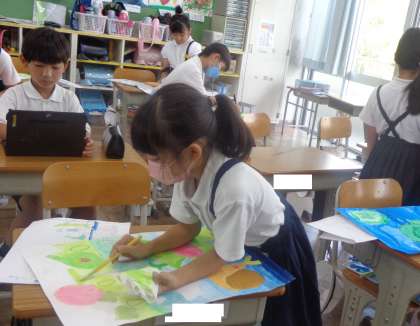学級のようす 3年生 公開日 2023/07/06 更新日 2023/07/06 3年生 図書室が使える時間です。 本を選ぶところから楽しそうです。 作品ももうすぐ仕上がるところのようです。 絵の具を使って、取り組んでいます。 福祉の学習に取り掛かっている3年生。 タブレットで調べて、選んでプリントにまとめています。