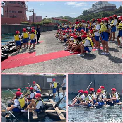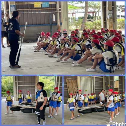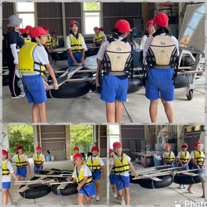 ?イカダに乗るために、はじめに説明を聞きました。説明を聞いた後はいよいよ海に出発です!