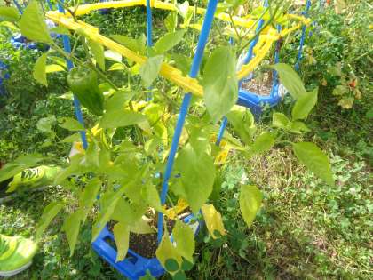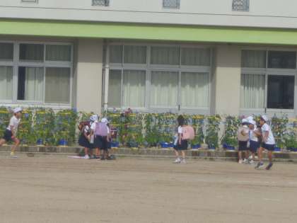 1年生が育てているアサガオもたくさんの花が咲いています。