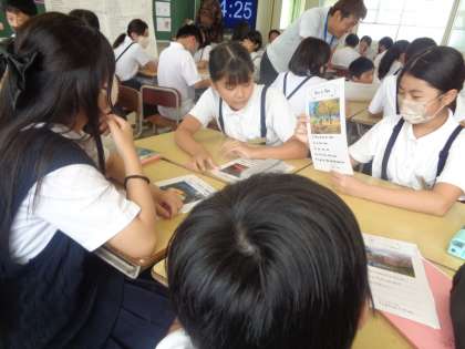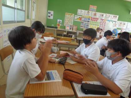 季節や都市などのおすすめを英文で仕上げて、班で発表しています。