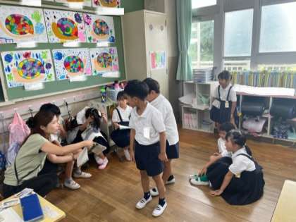 「おおきなかぶ」の学習で、音読劇に取り組んでいます。今日はグループに分かれて練習をしました。「みんなで力を合わせて頑張っている気もちを込めたらいいと思う」と意見が出ました。声や動きも工夫しています。