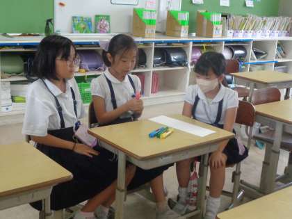 2年生の教室にはいると、グループに分かれて、楽しいことを計画中のようでした。