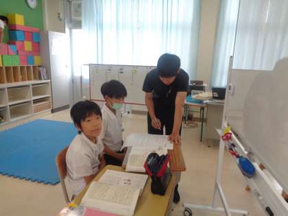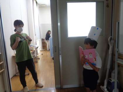 ぽぷら学級 公開日 2023/07/14 更新日 2023/07/14 ぽぷら学級 6年生の学習の時間です。 課題の解決に向けて、じっくりと取り組みます。 異学年一緒に、自立活動の時間です。 多くの学びが含まれている時間です。 帽子を作ってかぶりました。 帽子博士が、先生の好きな帽子について想像します。