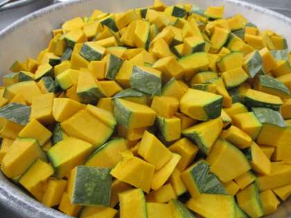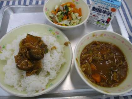 太陽をたくさんあびて育った夏野菜には、栄養がたっぷり!また、熱くほてった体を冷やしてくれる働きもあります。今日は、夏野菜の「なす・かぼちゃ・さんどまめ」が入ったカレーです。夏野菜をおいしく食べて、暑い季節を元気に過ごしましょう!