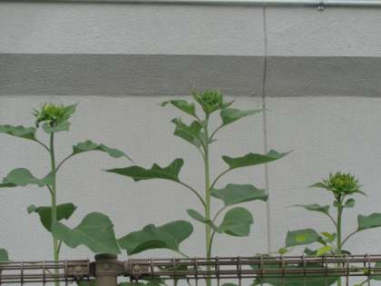 もうすぐ、次々にヒマワリの花が咲いてくれそうです。