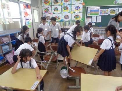 1年生の教室には、6年生が来てくれています。