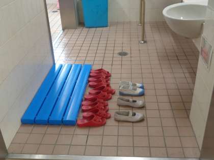 トイレ掃除の場所には、履き替えた上靴がきれいに並べられています。
