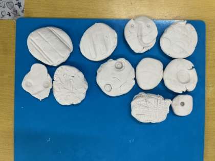 最近の1年生 その1 公開日 2023/09/06 更新日 2023/09/06 1年生 最近の1年生の様子です。 図工の学習では、ねんどや絵の具を使っています。ねんどで教室の中のいろいろな型をとって集めました。 はじめての絵の具の学習もしました。ドキドキしながら、集中して絵の具で色を塗りました。