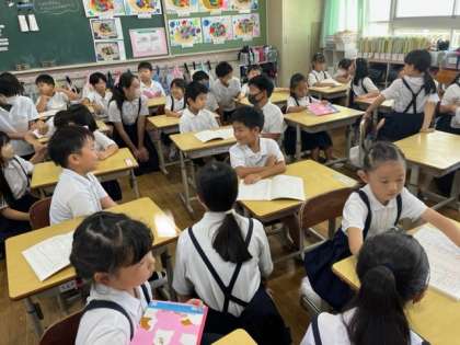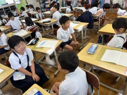 最近の1年生 その2 公開日 2023/09/06 更新日 2023/09/06 1年生 国語や6年生との交流で、友だちと話す練習を頑張っています。 夏休みにあったできごとをペアの友だちや6年生に伝えて、質問する練習をしています。