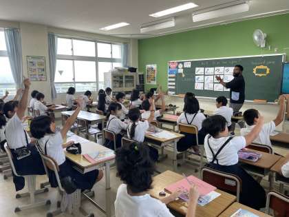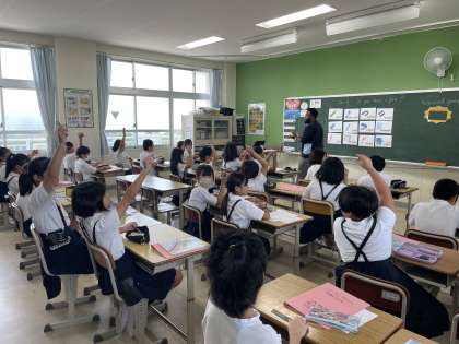 NSの先生と一緒に発音やゲームをしました。楽しく授業に取り組んでいました。