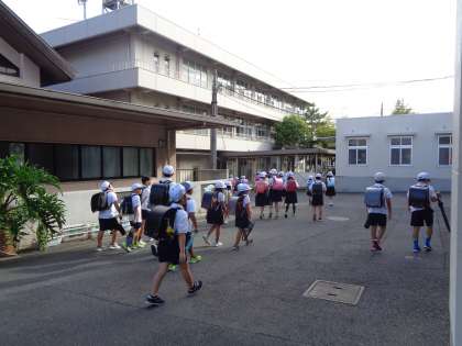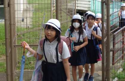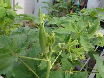 正門前には、安全管理員さんがお世話をしてくださっている「オクラ」が実ってきました。