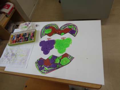 2年生は、ティッシュでこする技法も使って工夫がもう一つふえています。