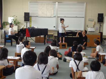 指揮の練習も行い、さあみんなで歌ってみよう。