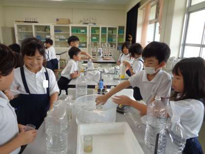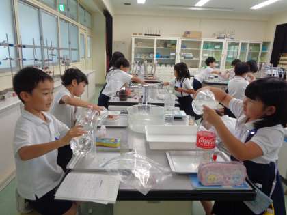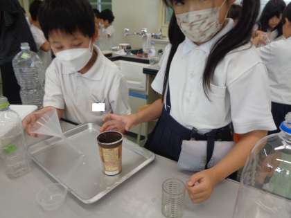 自分たちが持ってきた容器には、どれだけの水が入るのか、量ってみよう。