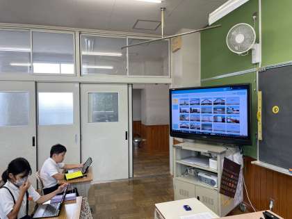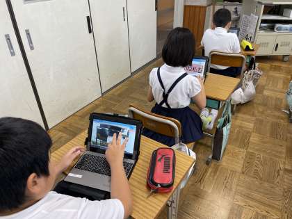 一人一人がタブレットで撮影したものを、「みんなの作品」で共有しメッセージを送りあいました。