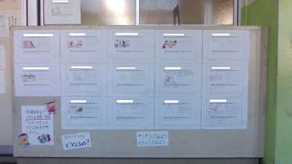 児童保健委員会の活動時間に、9月は「救急の日」にちなんだけがを意識して、けがの予防のための掲示を作成しました。けがにつながりそうな場面を考え絵を書きました。また、困ったことにならないためには、どうしたらいいかと、けがにつながらないために気をつけることなどを考えました。