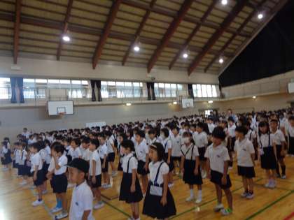 みんなで歌う校歌が始まりを元気づけてくれます。