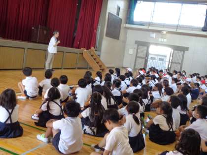 けれども、学校にいないときも危険な時もあるから、勉強したことを生かして、もし危ないことに巻き込まれそうになったら、近くの家やお店に駆け込んで助けを求めて、命を大事にしてほしいとの話にも、一生懸命に耳を傾けていました。