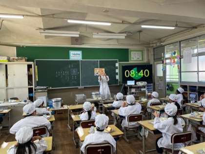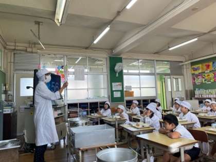 給食の時間に、栄養教諭の先生が紙芝居をしに来てくれました。