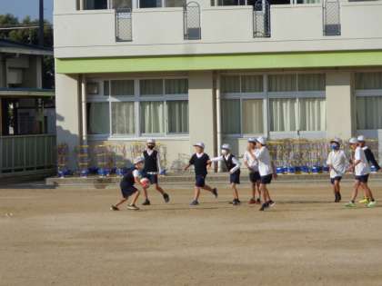 登校してきた子どもたちから、運動場に集まってきて、いつものように遊びます。