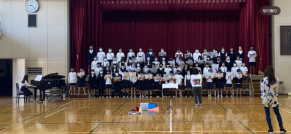 昨日から5年生が連合音楽会に向けて合同練習がスタートしました。初めは実行委員会から目標やどんなことを頑張るとよいかを具体的にみんなに伝えていました。「みんなで集まって歌うと体育館がしっかり響いて気持ちがいいなぁ!」と言っている子がいました。「もっとみんなで息をそろえて歌いたい!」「もっと強く歌えるように表現したい!」と子どもたちは意欲的に練習していました。