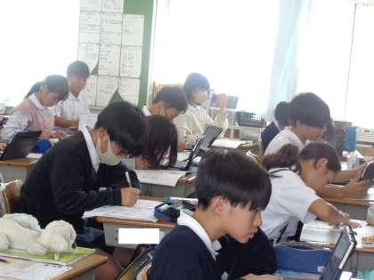 学校が建てられるとき、ボーリングした地層のデータを見ています。