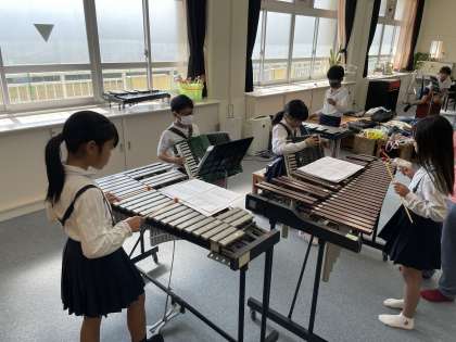グループで演奏したり、パートごとに練習したりと意欲的に取り組んでいました。