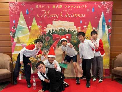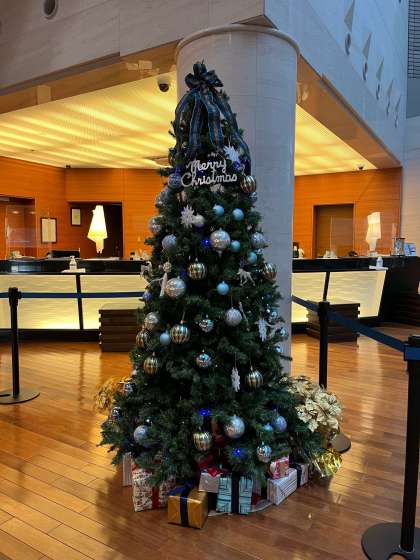 ホテルのクリスマスデコレーションがとても綺麗でした。フォトスポットで子どもたちも撮影しました!
