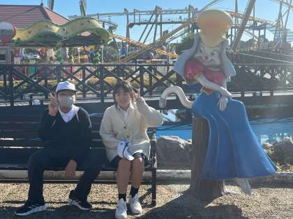 バイキングに乗ったり、キャラクターと写真を撮ったりしました。
