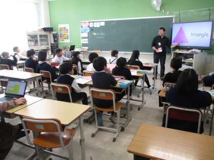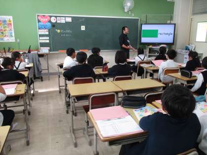 外国語活動の時間です。いろいろな形について英語でどう言うのか学習しています。