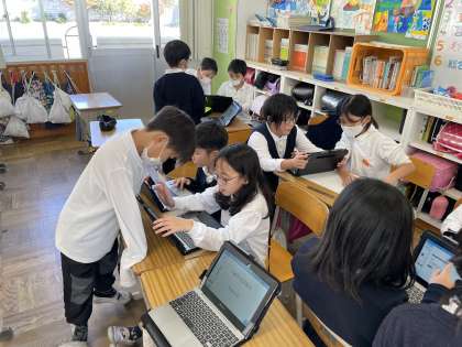総合学習では、防災についてグループでまとめています。