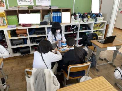 タブレットを使ったりカードを作ったりと、グループごとに工夫しながら取り組んでいます。
