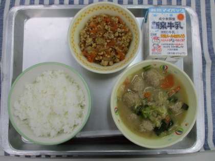 今日は、じゃがいもを油で揚げ、肉や野菜が入ったあんをかけています。