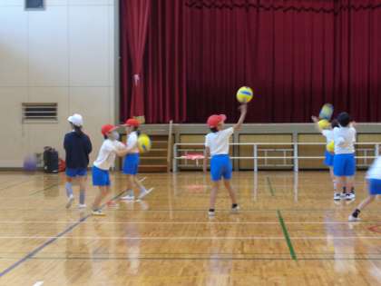 一人1個ずつのボールを準備して、ボール運動が始まるところです。