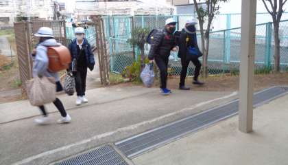 子どもたちは登校時は、しっかりと冬支度のようすですね。