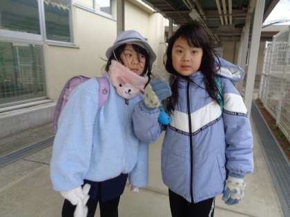 寒い朝です。 1月24日(水) 公開日 2024/01/24 更新日 2024/01/24 北小あれこれ 今にも雪が降り出してきそうな空です。 今日は、予報どおり、真冬の寒さです。 安全管理員さんの小屋の近くの入れ物にはっていた水は凍っていて上には雪がちらほらをとどまっています。 途中で見つけたという氷も、今日のは、厚さがありました。 寒い中、鼻もちょっと赤くなってしまいます。 子どもたち、元気に登校です。