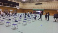入退場を中心に流れを確認しています。自分たちの動きを確認しながら練習しています。