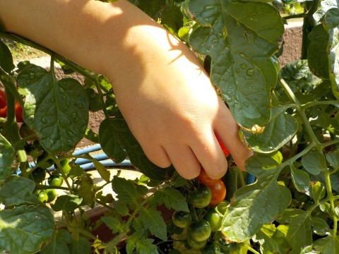 みんなでお世話をして、大きく育った夏野菜を収穫し、順に持ち帰ります。おうちで楽しみにお待ちください。