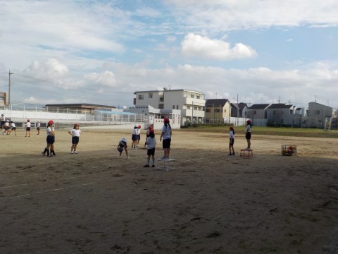 1組は体育で,ポートボールをしていました。ゴールマンに届くようにシュートの練習です!
