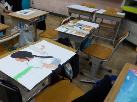 2組と3組は図工で,「今夢中になっていること」について描いていました。