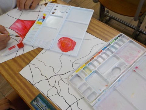 1組は図工で,2色の色だけを工夫して混ぜ,微妙な違いを楽しんでいました。