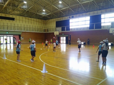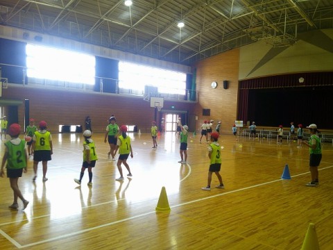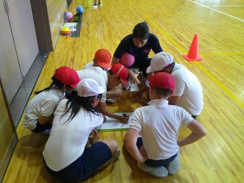 ラインポートボールをしています。今日は「コンビネーションプレイ」を意識して作戦会議をして試合に活かしていました。